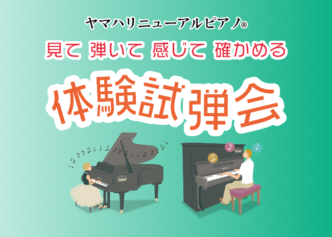 事業内容 Service ピアノ買取 ピアノを売りたい方へ あなたの大切なピアノを次の世代へ 弾かなくなったピアノをヤマハに再活用させてください 詳しくはこちら 中古ピアノ販売 中古ピアノを買いたい方へ ぴったりな一台と出会うために ヤマハ独自の技術で再生した高品質ピアノ「ヤマハリニューアルピアノ」 詳しくはこちら 「リニューアルピアノ」特設サイトへ ピアノ調律・修理 ピアノメンテナンスをお考えの方へ 最高の状態を生む技と誇り ヤマハグループで安心のメンテナンスを 詳しくはこちら ヤマハピアノサービスの取り組み 私たちが信じるピアノの力 詳細はこちら スペシャルコンテンツ Special Contents ピアノの持つパフォーマンスを最大化 『ヤマハリニューアルプラン』をプロが体感。その評価は? 安部 潤さん(音楽プロデューサー、アレンジャー、ピアニスト、キーボードプレイヤー)/安部和奏さん(ピアニスト、キーボーディスト、ベーシスト) Report このピアノには“再生”という言葉がふさわしい 安部 潤さん(音楽プロデューサー、アレンジャー、ピアニスト、キーボードプレイヤー) Interview 一覧を見る ヤマハリニューアルピアノ特設サイト(在庫情報検索) 見て 弾いて 感じて 確かめるヤマハリニューアルピアノ®︎「体験試弾会」 最新情報 News 2026.02.16 【ヤマハリニューアルピアノ®︎体験試弾会のお知らせ】2026年3月7〜8日に横浜センターにて開催します 2025.11.26 年末年始休業のお知らせ 2025.10.09 『中古ピアノの選び方のコツ!失敗しないために絶対に抑えるべきポイントとは?』を公開 2025.10.08 【ヤマハリニューアルピアノ®︎最新在庫 スタッフレビュー】<YU33SG2>を公開 2025.10.08 【ヤマハリニューアルピアノ®︎最新在庫 スタッフレビュー】<MC1AWnC>を公開 2025.10.08 【ヤマハリニューアルピアノ®︎最新在庫 スタッフレビュー】<YC1SG>を公開 2025.10.06 合同フェア「ヤマハリニューアルピアノ®︎フェアin横浜」を10/25(土)、26(日)の2日間、横浜センターにて開催します 2025.07.28 【ヤマハリニューアルピアノ®︎最新在庫 スタッフレビュー】<YUS1SHTA>を公開 一覧を見る コラム Column 中古ピアノの選び方のコツ!失敗しないために絶対に抑えるべきポイントとは? 中古ピアノの調律は必要?調律すべきタイミングや基礎知識を解説 ピアノの調律にかかる値段は?どれくらいの費用か相場を解説 一覧を見る