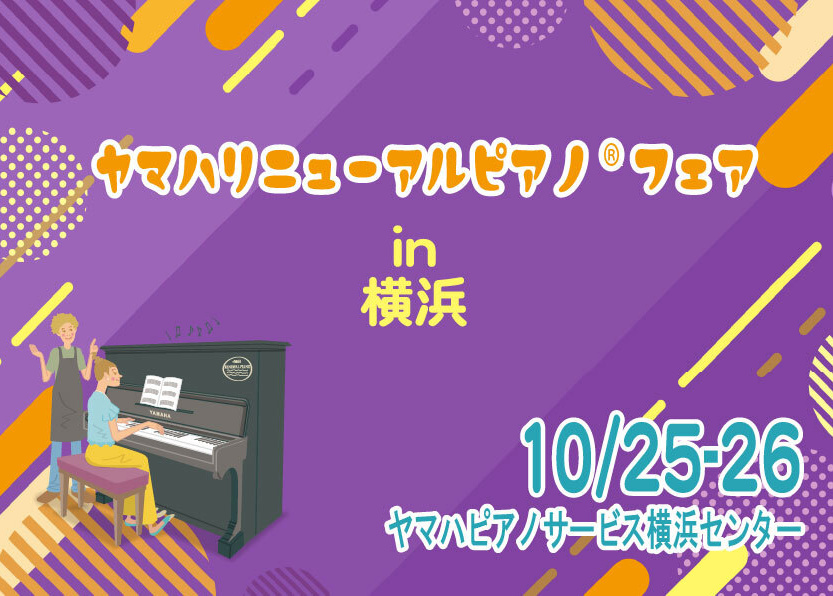 事業内容 Service ピアノ買取 ピアノを売りたい方へ あなたの大切なピアノを次の世代へ 弾かなくなったピアノをヤマハに再活用させてください 詳しくはこちら 中古ピアノ販売 中古ピアノを買いたい方へ ぴったりな一台と出会うために ヤマハ独自の技術で再生した高品質ピアノ「ヤマハリニューアルピアノ」 詳しくはこちら 「リニューアルピアノ」特設サイトへ ピアノ調律・修理 ピアノメンテナンスをお考えの方へ 最高の状態を生む技と誇り ヤマハグループで安心のメンテナンスを 詳しくはこちら ヤマハピアノサービスの取り組み 私たちが信じるピアノの力 詳細はこちら スペシャルコンテンツ Special Contents ピアノの持つパフォーマンスを最大化 『ヤマハリニューアルプラン』をプロが体感。その評価は? 安部 潤さん(音楽プロデューサー、アレンジャー、ピアニスト、キーボードプレイヤー)/安部和奏さん(ピアニスト、キーボーディスト、ベーシスト) Report このピアノには“再生”という言葉がふさわしい 安部 潤さん(音楽プロデューサー、アレンジャー、ピアニスト、キーボードプレイヤー) Interview 一覧を見る ヤマハリニューアルピアノ特設サイト(在庫情報検索) 見て 弾いて 感じて 確かめるヤマハリニューアルピアノ®︎「体験試弾会」 最新情報 News 2026.02.16 【ヤマハリニューアルピアノ®︎体験試弾会のお知らせ】2026年3月7〜8日に横浜センターにて開催します 2025.11.26 年末年始休業のお知らせ 2025.10.09 『中古ピアノの選び方のコツ!失敗しないために絶対に抑えるべきポイントとは?』を公開 2025.10.08 【ヤマハリニューアルピアノ®︎最新在庫 スタッフレビュー】<YU33SG2>を公開 2025.10.08 【ヤマハリニューアルピアノ®︎最新在庫 スタッフレビュー】<MC1AWnC>を公開 2025.10.08 【ヤマハリニューアルピアノ®︎最新在庫 スタッフレビュー】<YC1SG>を公開 2025.10.06 合同フェア「ヤマハリニューアルピアノ®︎フェアin横浜」を10/25(土)、26(日)の2日間、横浜センターにて開催します 2025.07.28 【ヤマハリニューアルピアノ®︎最新在庫 スタッフレビュー】<YUS1SHTA>を公開 一覧を見る コラム Column 中古ピアノの選び方のコツ!失敗しないために絶対に抑えるべきポイントとは? 中古ピアノの調律は必要?調律すべきタイミングや基礎知識を解説 ピアノの調律にかかる値段は?どれくらいの費用か相場を解説 一覧を見る
